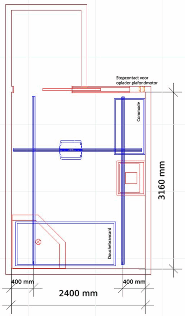 Wanneer de transferpunten samen met de leverancier goed bepaald zijn, en de locatie van bed, toilet en douche niet verandert, blijft de gemonteerde plafondrail steeds op de juiste positie voor gebruik.